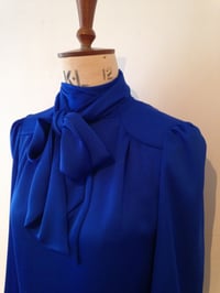 This stunning blouse/top is the perfect accent to a pair of high waisted trousers or a pencil skirt. It has an extra large neck tie you can wrap around twice for a dramatic look or leave loose for a casual, artistic look. There are no fastenings, it is not fitted just skims the body. Put on over your head and tie a bow.