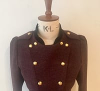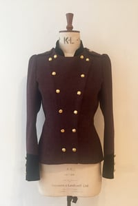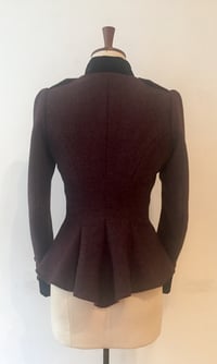 Beautifully cut 100% British tweed and velvet double breasted jacket with fluted back panels.